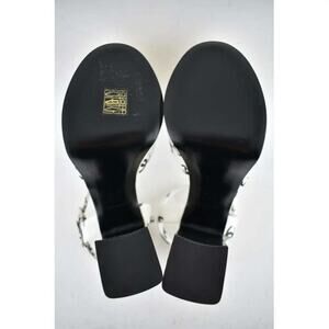 Chanel 22S White Black Lambskin CC Logo Platform Strap Block Heel Sandal 40