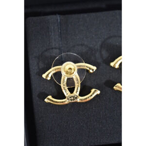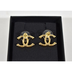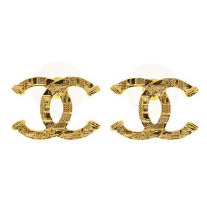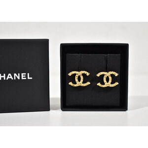 Chanel 23A Gold Hammered Interlocking CC Logo Classic Statement Stud Earrings