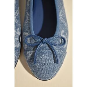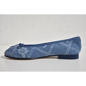 Chanel 23A Printed Denim Blue White CC Logo Bow Tie Ballet Ballerina Flat 38