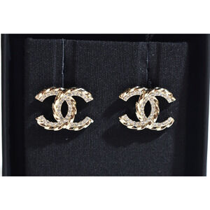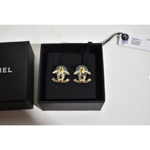 Chanel 23B Gold Crystal Interlocking CC Logo Classic Statement Stud Earrings