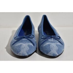 Chanel 23B Printed Denim Blue White CC Logo Bow Tie Ballet Ballerina Flat 37.5