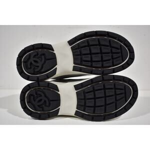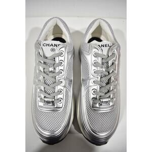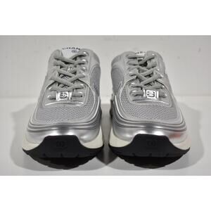 Chanel 23C Gray Silver Metallic CC Logo Lace Up Flat Runner Trainer Sneaker 38.5
