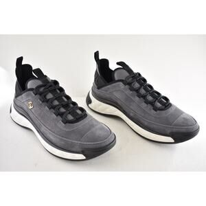 Chanel 23K Mens Grey Black White CC Logo Lace Up Low Top Trainer Sneaker 45 12
