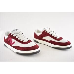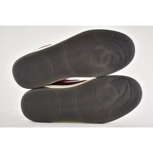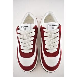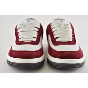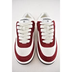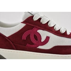 Chanel 23P Burgundy Suede White CC Logo Flat Lace Up Runner Trainer Sneaker 37