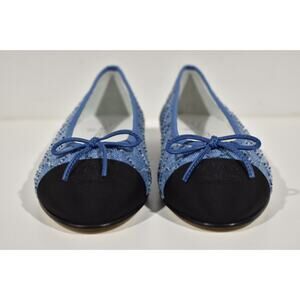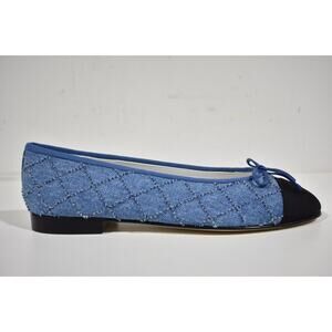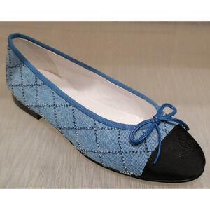 Chanel 23P Denim Blue Black CC Logo Cap Toe Bow Tie Ballet Ballerina Flat 37