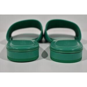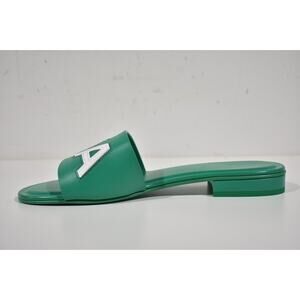 Chanel 23P Green White Leather CC Logo Letter Mules Slide Slip Sandal Flat 40