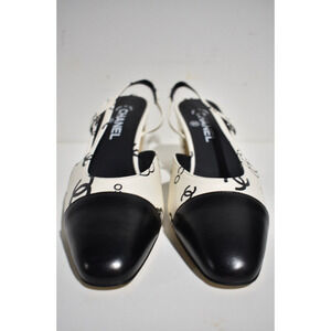 Chanel 23P Mademoiselle Coco Sling White Black CC Logo Slingback Sandal Heel 37.5
