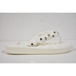 Chanel 23P White Quilted Charms Padded Pool Thong Logo Mule Slide Flat Sandal 35