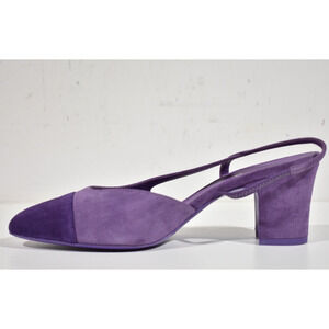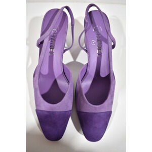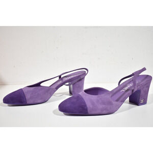 Chanel 23S Mademoiselle Coco Sling Purple Suede Slingback Sandal Block Heel 40.5