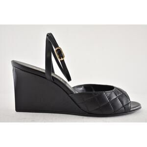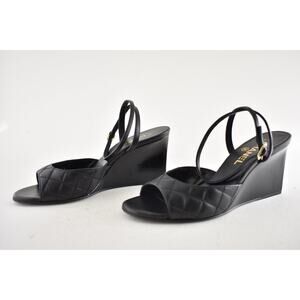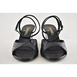Chanel 24C Black Quilted Lambskin CC Crystal Logo Ankle Strap Sandal Wedge 38