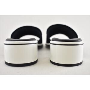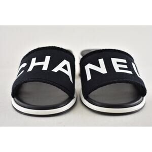Chanel 24C Black White CHA NEL Letter Logo Mule Slide Block Heel Sandal 38.5