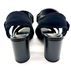 Chanel 24C Gold CHANEL & CC Logo Black Fabric Block Heel Strappy Sandals EU 37