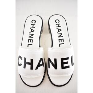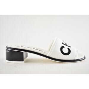 Chanel 24C White Black CHA NEL Letter Logo Mule Slide Block Heel Sandal 37.5