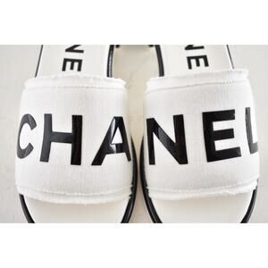 Chanel 24C White Black CHA NEL Letter Logo Mule Slide Block Heel Sandal 41