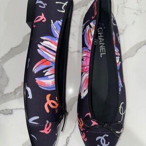 Chanel 24S Blue Printed Logo Multicolor CC Logo Bow Tie Ballet Ballerina Flat 41
