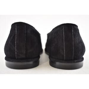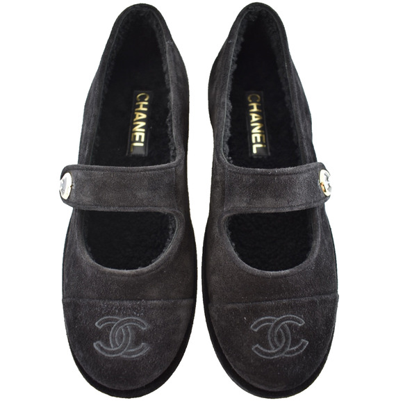 Chanel 25B Black Suede Shearling Fur Mary Jane Moccasin Ballet Loafer Flat 36.5
