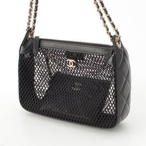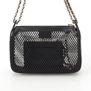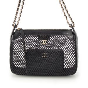 Chanel 25SS Leather Coco Mark Mesh Chain Shoulder Bag Ap4572 Black