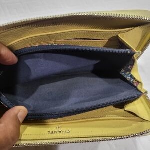 Beautiful yellow goatskin special edition zipper long wallet in exelent condition, leather in great condition, interior very clean, no odors, stamps and code stamp on pictures, great addition to your collection... Chanel yellow leather wallet with iconic logo. Sleek and stylish design.