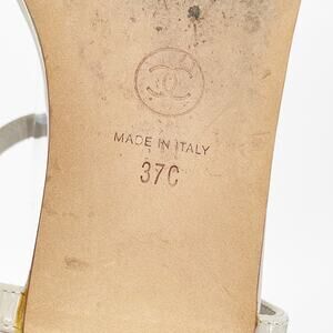 Chanel 37C Gray Quilted Leather Faux Pearl CC Logo Ankle Strap Flat Sandals