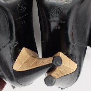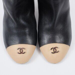A wonderful pair of Chanel 2007 collection boots Size 39 / US 9Black leather with signature beige toecap with CC logo studs