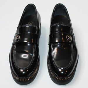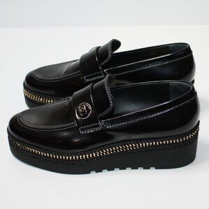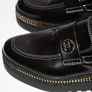 Chanel 40 mm Zip PM Wedge Loafer Black Shoes with Gold CC in size EU 40 / US 10