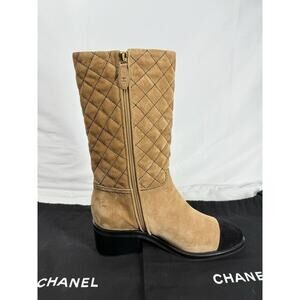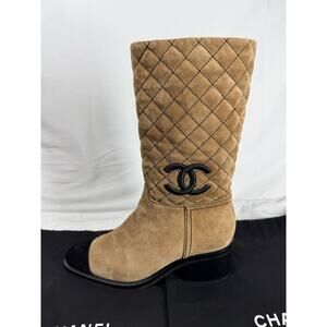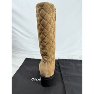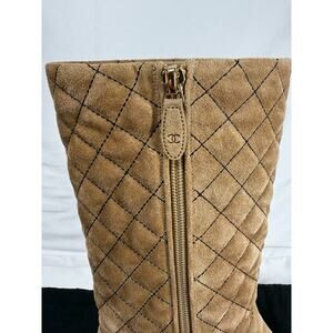 Chanel 50mm Quilted Brown Suede Tall High Boots CC Logo SPB-TS 348371