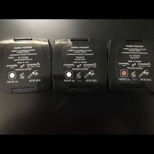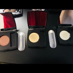 Beautiful barely used (mostly swatched) Chanel eyeshadow collection. 2 palettes 288 Road Movie (with original box) and 254 Tisse D’Automne 2 longwear cream shadows 812 noir petrole and 816 obscur. 3 ombré premiere longwear powder shadows 22 visone, 38 titane and trance (online exclusive). 7 new Chanel eyeshadow brushes as shown in photos. Will ship with Chanel white bag as shown. No trades. Bundles of 2 or more items 15% Off