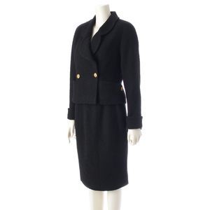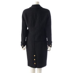 Chanel 93P Wool Clover Button Tweed Skirt Set Up P01452 Black 38