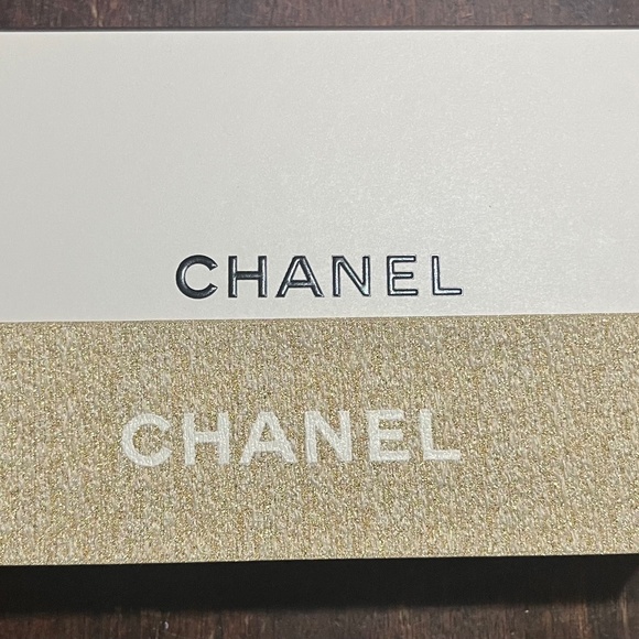New original Chanel gift box with black logo with detachable gold ribbon.