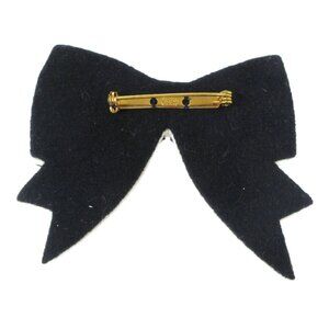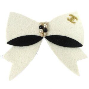 Chanel Artificial Pearl Bow Brooch Pin White Felt 02A 34021