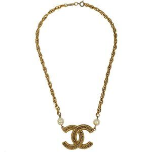 Chanel Artificial Pearl CC Chain Necklace Pendant Gold 1985/3616 196450