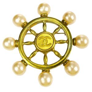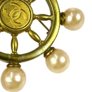 Chanel Artificial Pearl Rudder Charm Brooch Pin 94P 99632