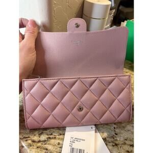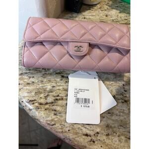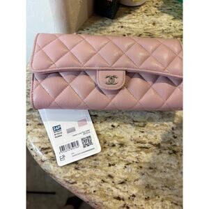 Chanel Authentic Caviar Pink Quilted Long Flap Wallet MSRP $1375