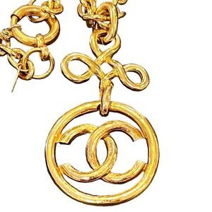 Chanel Authentic Vintage Twisted Cross Circle CC Cut Out 1993 Pendant Necklace