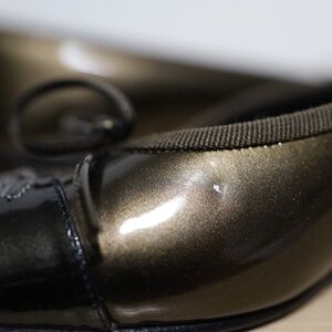 Title: Chanel Ballerina Flat Sandals Patent Leather Green Bronze Brown Back Toe Sz 37