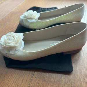 Chanel Ballet Flats with a flower embellishment and glitter finish