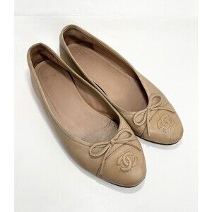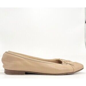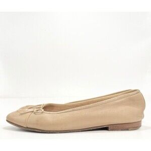Chanel Ballet Flats Nude/Beige Lambskin w/ Bow Accent CC Logo Sz EU 36.5