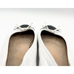 Chanel Ballet Flats White & Black Bi-Color Leather Cap Toe CC Logo Sz EU 36.5