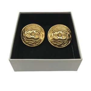These are authentic Chanel 1994 Baroque Embellished CC Clip-on Earrings that are gold plated.