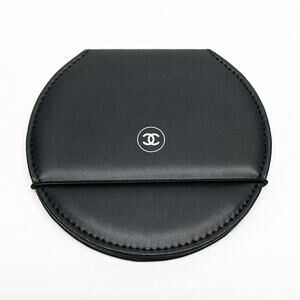 Chanel Beauté Round Folding Travel Pocket Mirror, Black Vinyl Cover - Unused