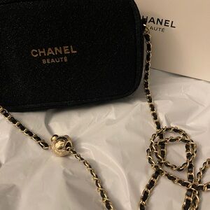 Chanel Beaute GWP Novelty bag/ pouch in black with gold accents. Ideal for stylish storage or to wear as crossbody with a chain . I will include the removable chain with purchase. Comes in white box as shown