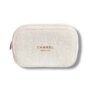 Chanel Beaute Winter White & Gold Tweed Cosmetic Pouch - New In Box