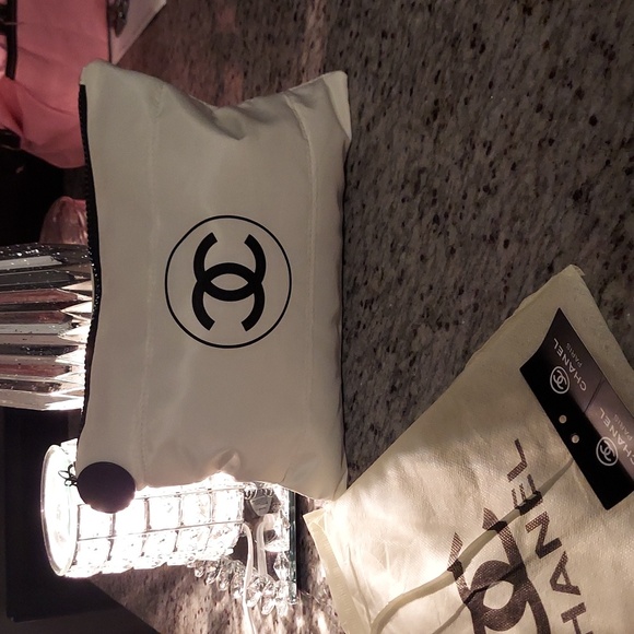 Chanel Beauty White Makeup Bag Pouch Clutch Cosmetic Case