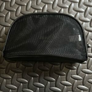 Chanel Beauty Women's Zip Around Crescent Cosmetic Bag Black Mesh Travel Pouch