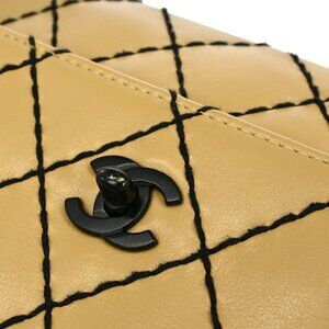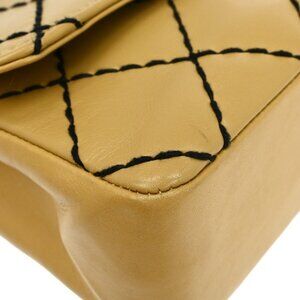 Chanel Beige Lambskin Wild Stitch Straight Flap Shoulder Bag XX40090