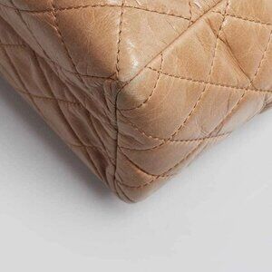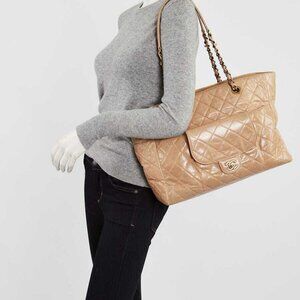 Chanel Beige Quilted Glazed Leather Front Pocket Large Tote Bag