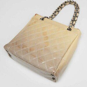 Chanel Beige Quilted Patent Caviar Leather Petite Reissue Shopping Tote Bag