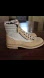 chanel combat boots cc logo beige suede canvas lace up designer womens luxury streetwear