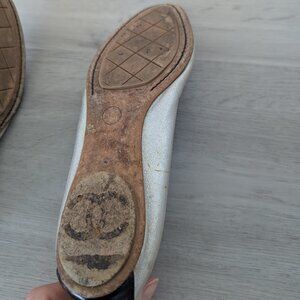 Chanel Bi-Material Ballet Flats in Silver and Black Size 38.5