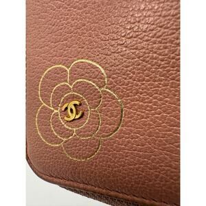 This is extremely clean and absolutely beautiful!! The pink with the embossed camellia flower on corner! Amazing zip around! This is very clean!  Please look at all pictures to look at wear.